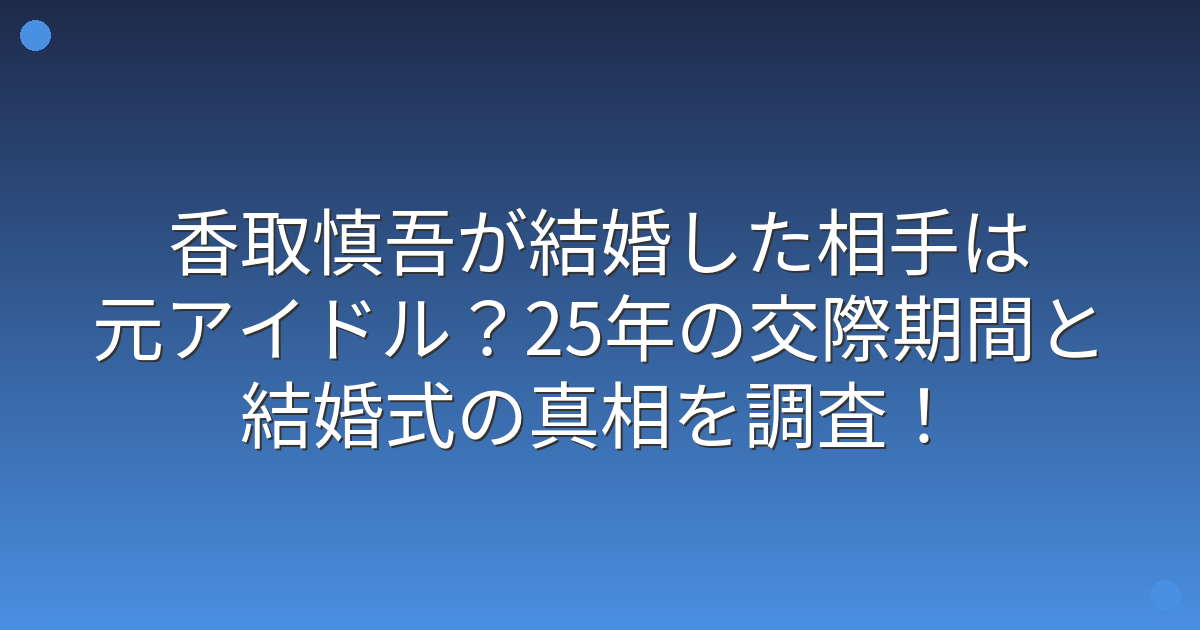 香取さんは2021年12月28日に元アイドルの一般女性との結婚を発表し、その交際期間は約25年に及ぶという長いものでした。