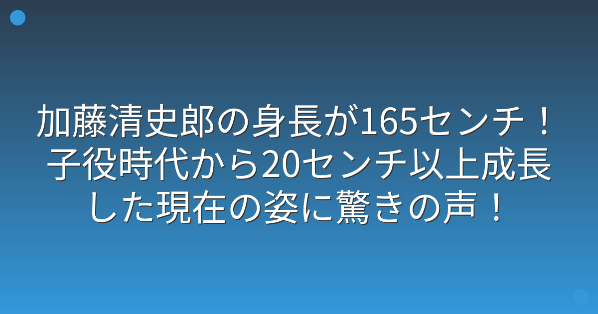 子役時代から成長を続け、現在は大人の俳優として多くの作品に出演している加藤清史郎さんですが、その身長に注目が集まっています。