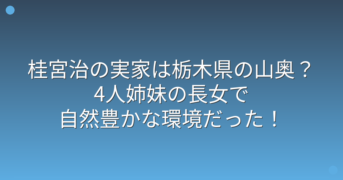 栃木県南東部の山奥という自然豊かな環境で育ち、4人姉妹の長女として成長した桂宮治さん。