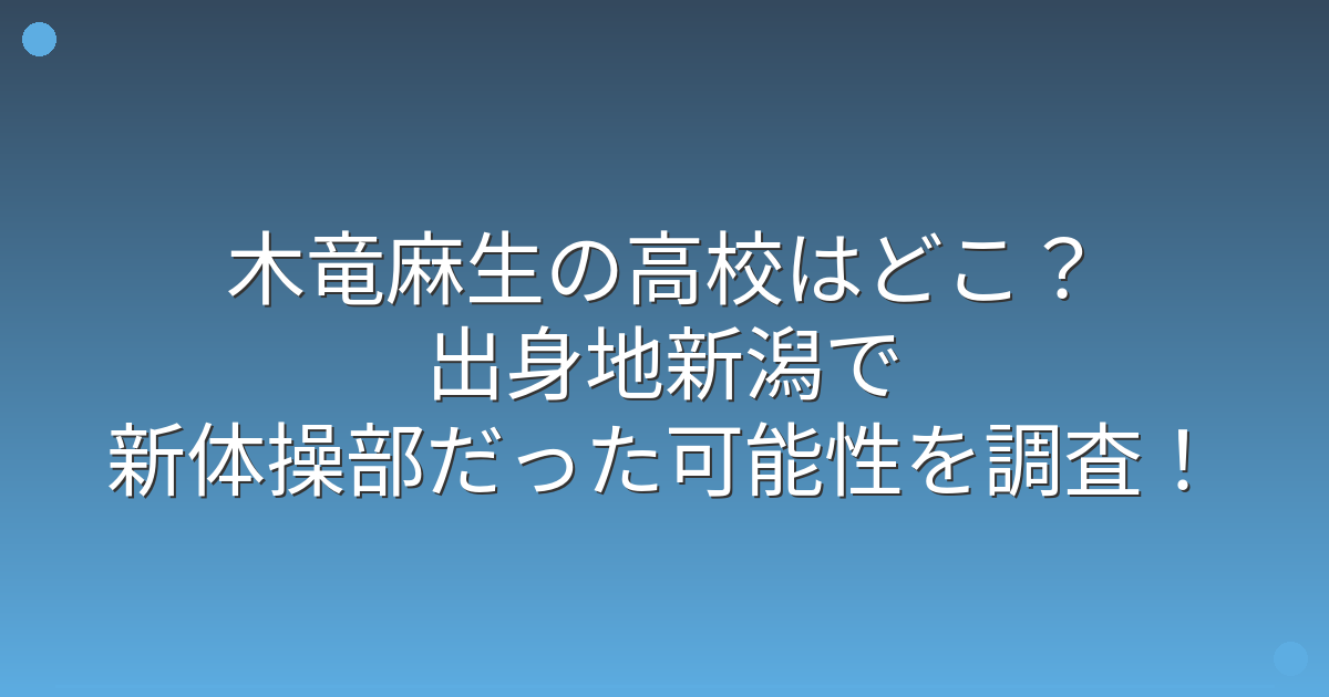 木竜さんの出身高校については具体的な校名は公表されていませんが、新潟県新発田市出身で特技が新体操であることから、地元の高校で新体操部に所属していた可能性が高いと考えられます。