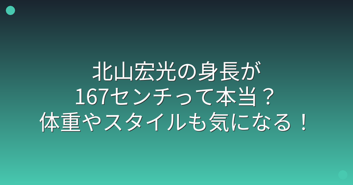 北山宏光さんの公式プロフィールによると、身長は167センチとされています。