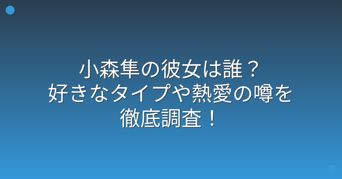 小森隼さんに現在彼女がいるのかどうか、多くのファンが気になっているところです。