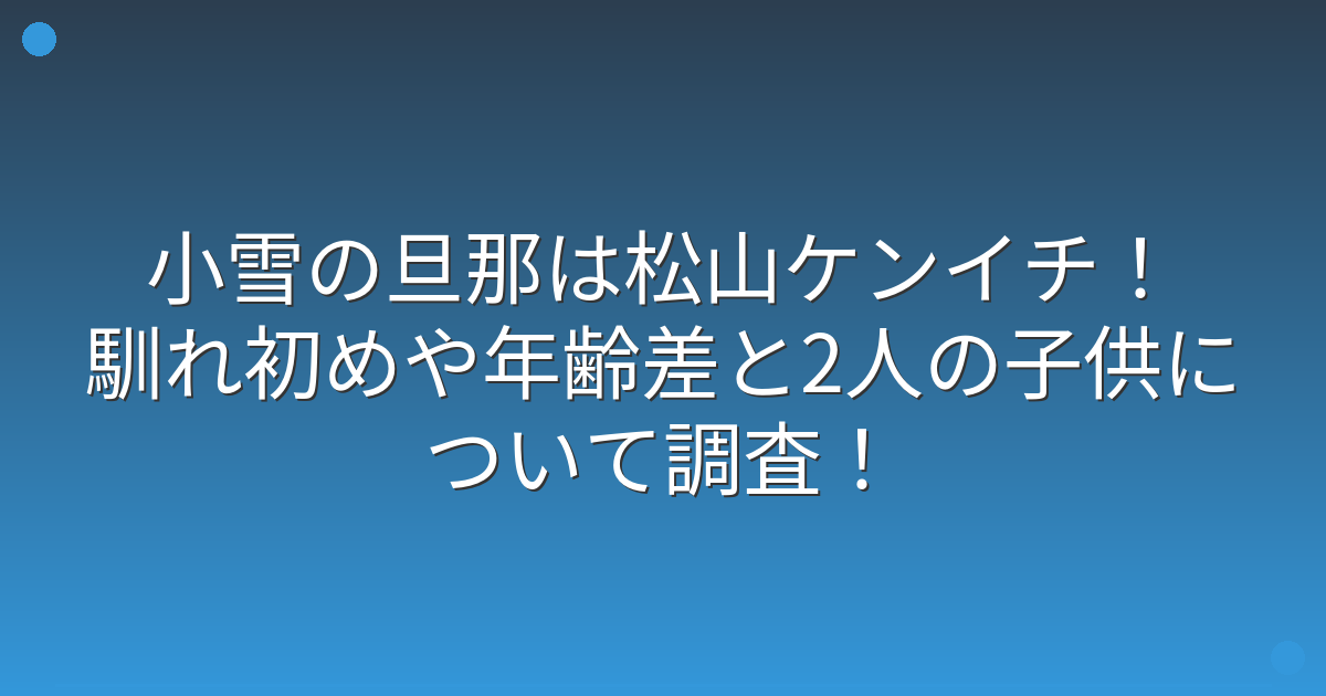 小雪さんの旦那さんについて、気になっている方も多いのではないでしょうか。
