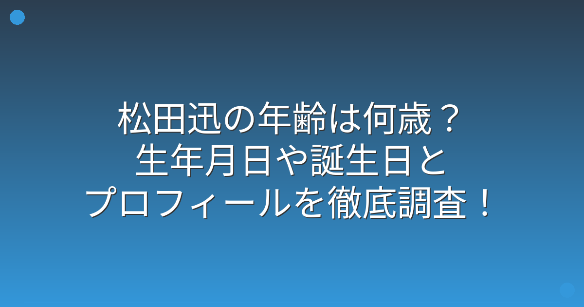 そこで今回は、松田迅さんの年齢や生年月日、プロフィールについて詳しく見ていきましょう!