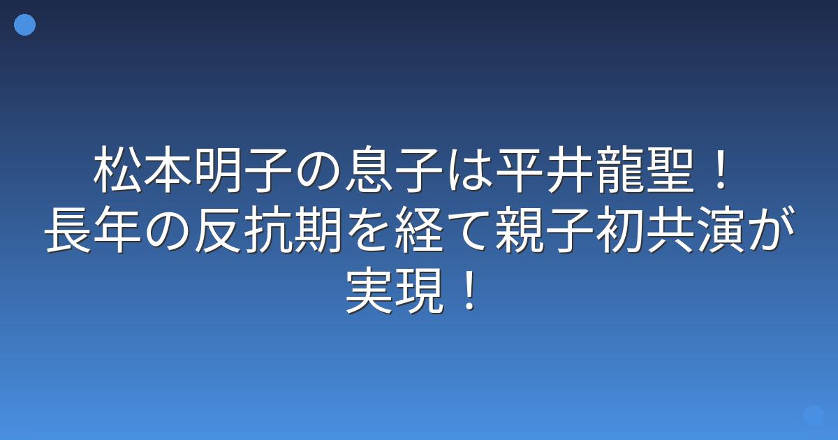 そこで今回は、松本明子さんの息子・平井龍聖さんについて、親子関係や共演の詳細を詳しく見ていきましょう!