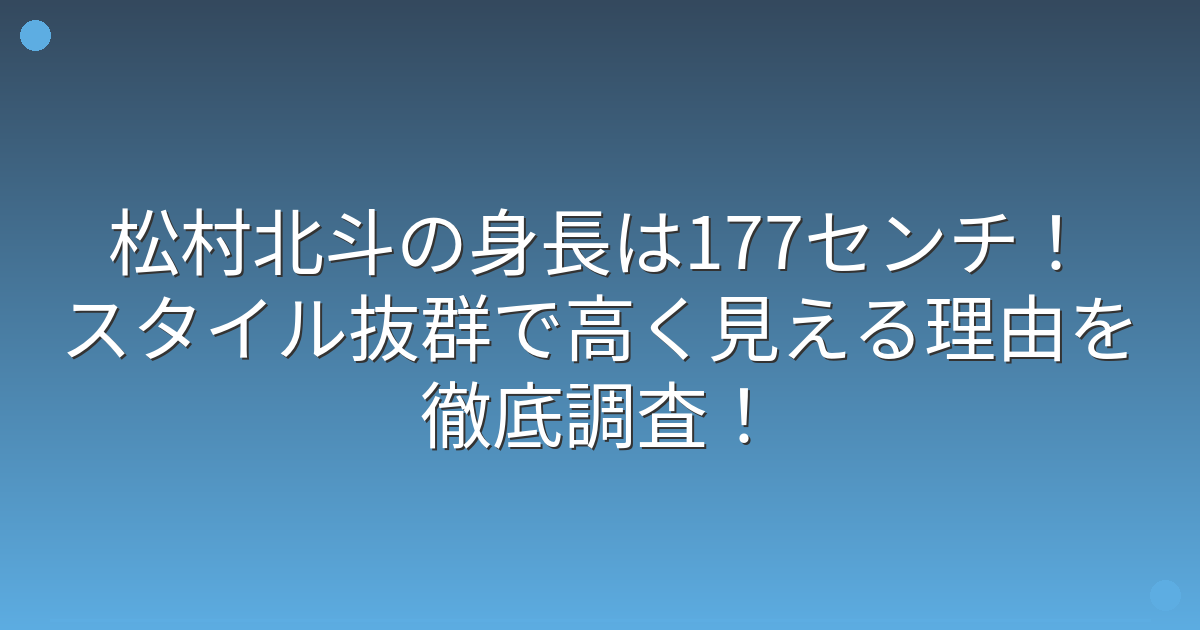 松村北斗さんの身長は、公式プロフィールで177センチと発表されています。