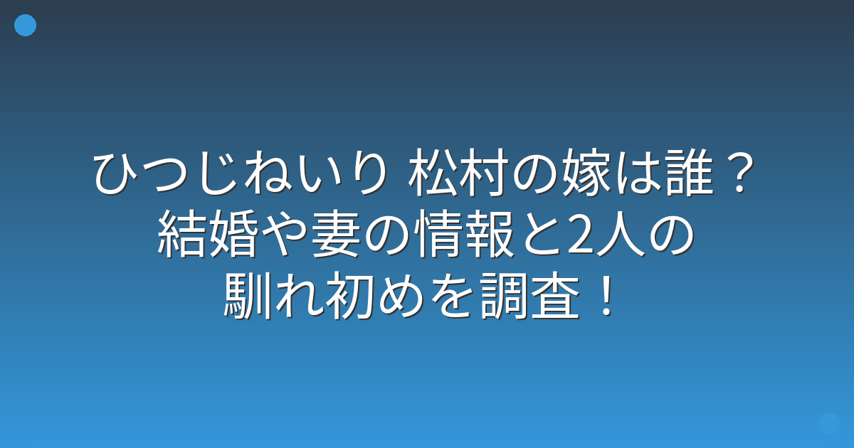 そこで今回は、ひつじねいり 松村さんの嫁や結婚情報、そして2人の馴れ初めについて詳しく見ていきましょう!