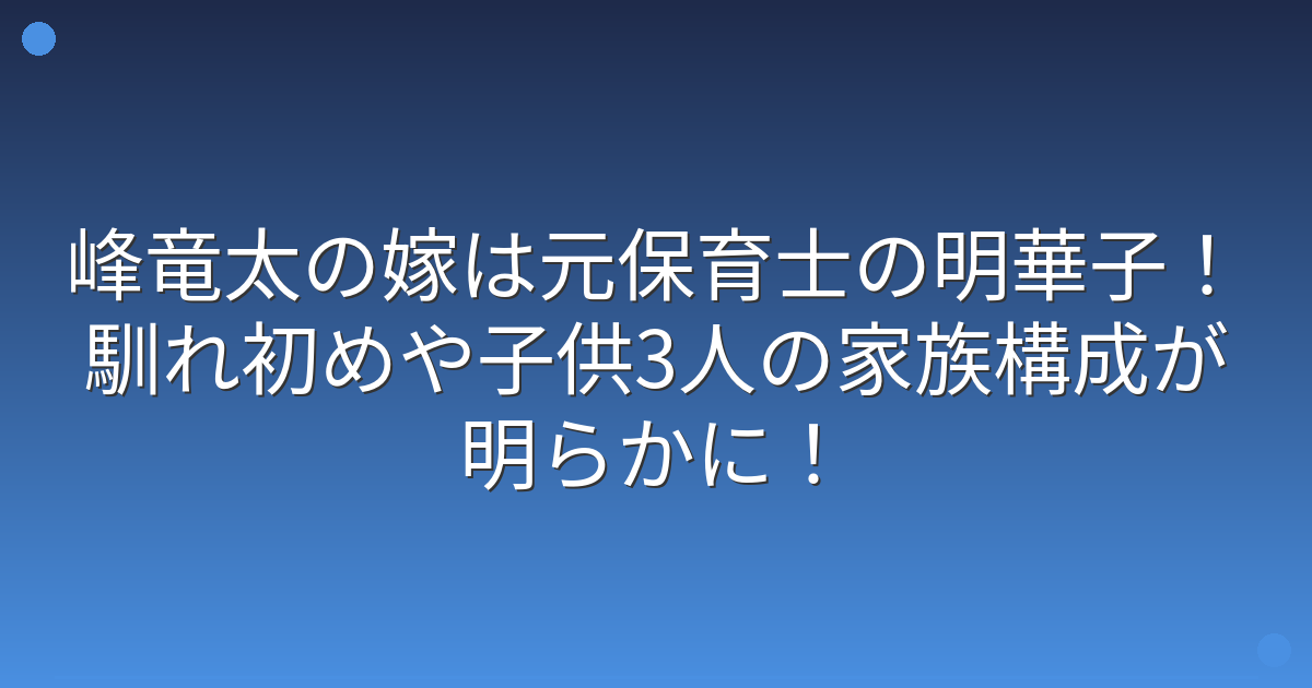 峰竜太さんの嫁は元保育士の明華子(あかね)さんで、知人の紹介で出会い、約2年弱の交際を経て2012年3月に結婚しました。