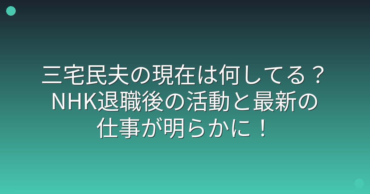 三宅民夫の現在は何してる?NHK退職後の活動と最新の仕事が明らかに!