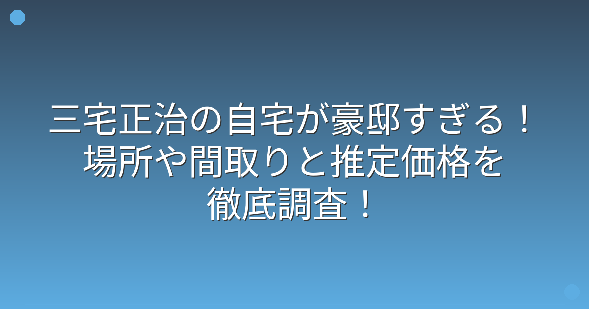 そこで今回は、三宅正治さんの自宅の場所や間取り、推定価格について詳しく見ていきましょう!