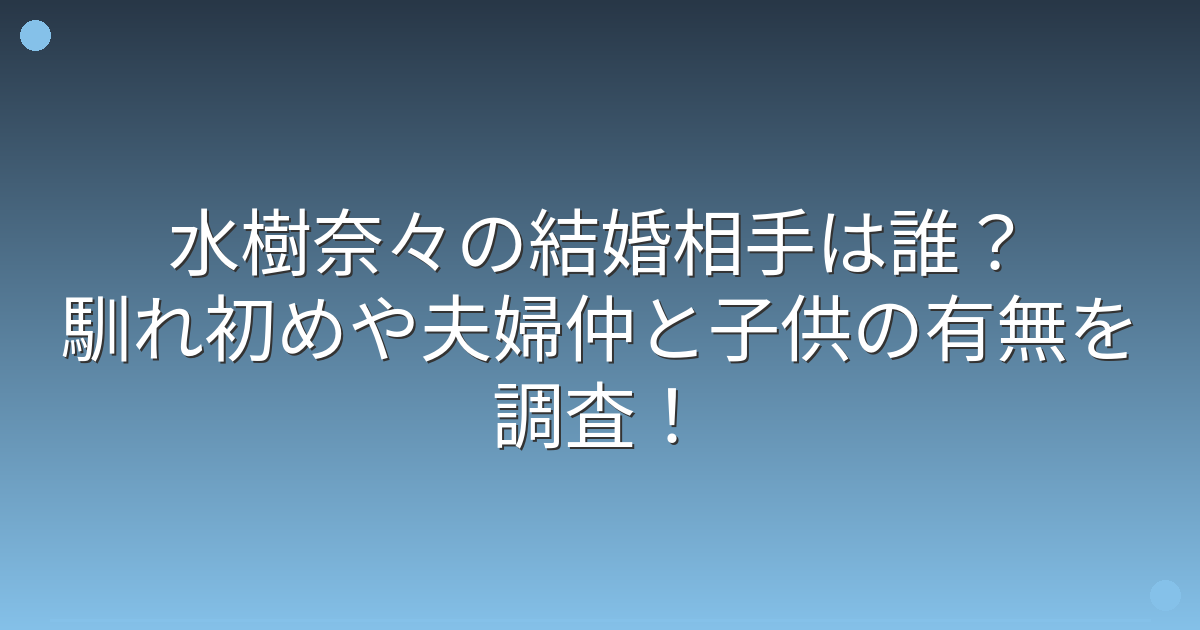 結婚から数年が経過した現在、水樹奈々さんの夫婦仲はとても良好だと言われています。