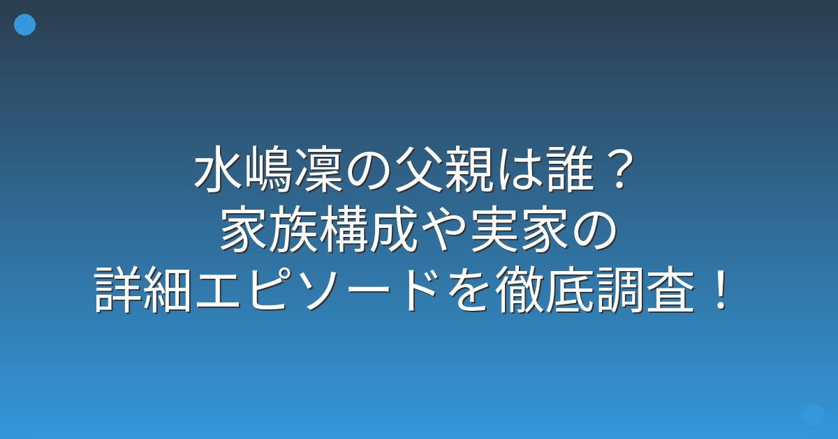 そこで今回は、水嶋凜さんの父親は誰なのか、家族構成や実家の詳細エピソードについて詳しく見ていきましょう!