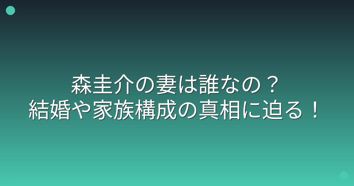 森圭介の妻は誰なの?結婚や家族構成の真相に迫る!