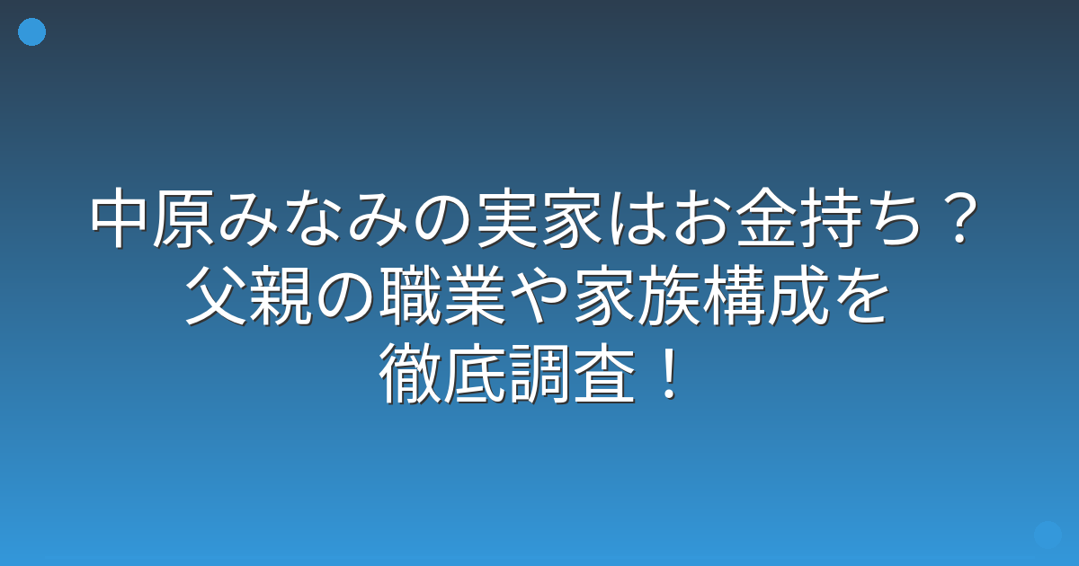 そこで今回は、中原みなみさんの実家はお金持ちなのか、父親の職業や家族構成について詳しく見ていきましょう!