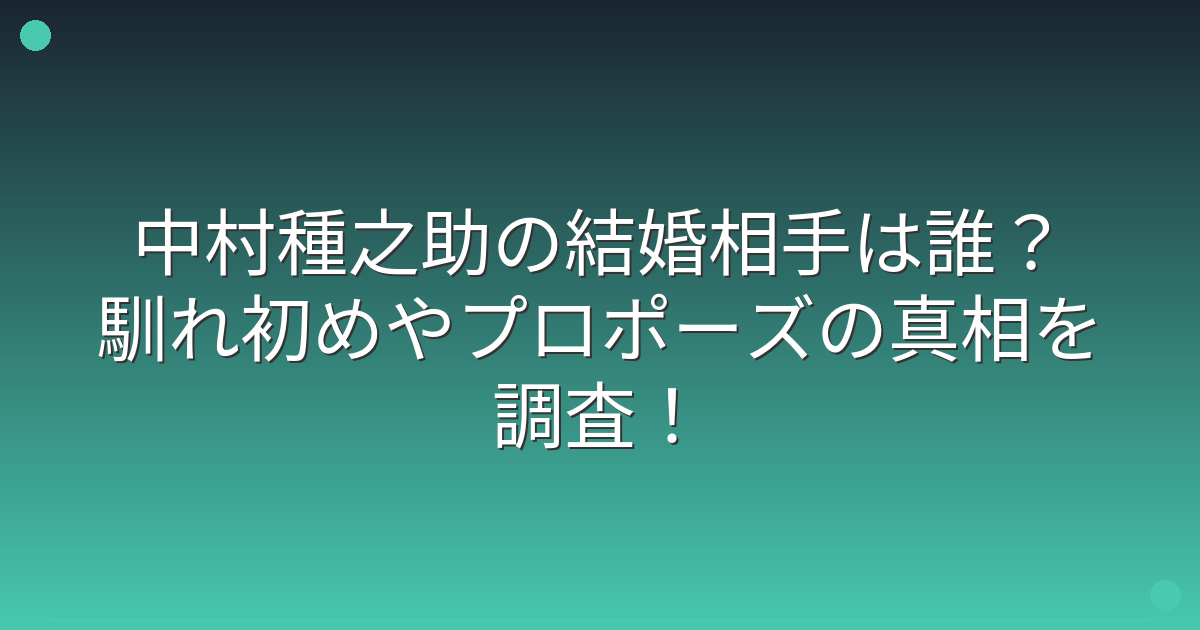 そこで今回は、中村種之助さんの結婚相手や馴れ初め、プロポーズについて詳しく見ていきましょう!