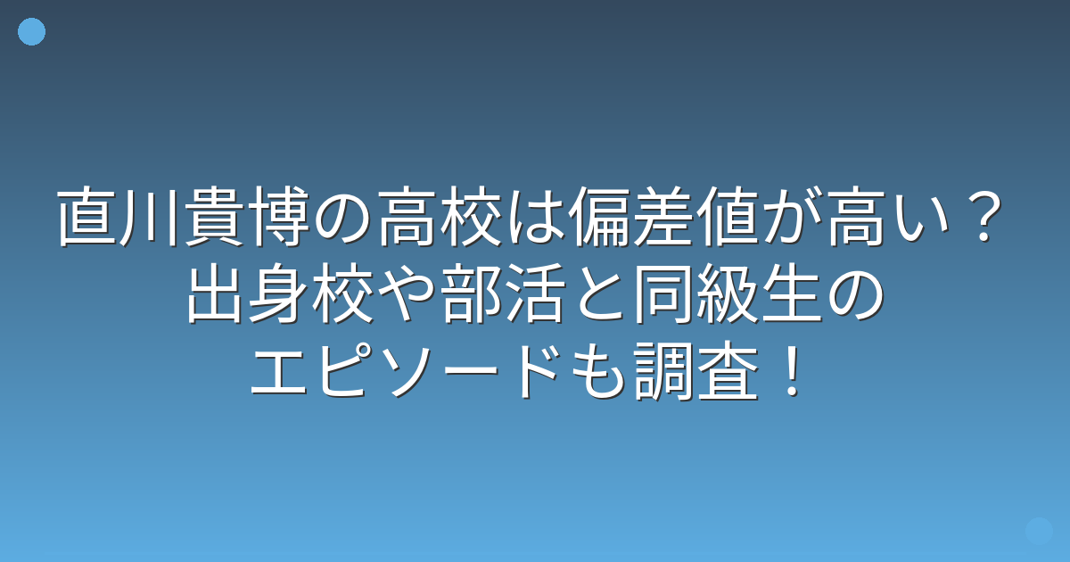 そこで今回は、直川貴博さんの出身高校や偏差値、部活動や同級生とのエピソードについて詳しく見ていきましょう!
