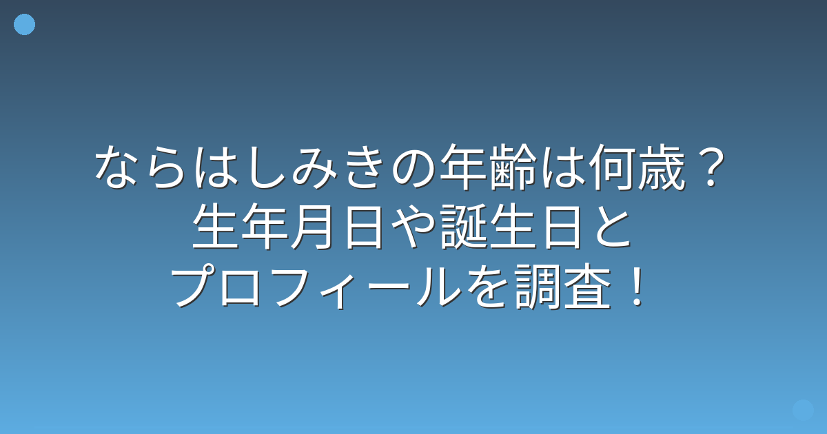 ならはしみきの年齢は何歳?生年月日や誕生日とプロフィールを調査!