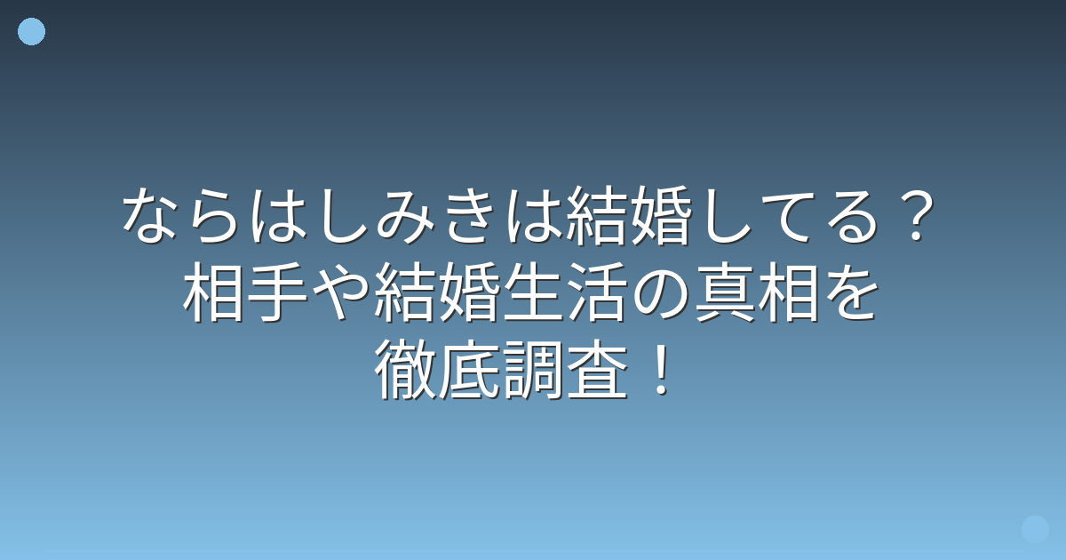 残念ながら、ならはしみきさんの結婚に関する情報は一切公表されていないというのが現状です。