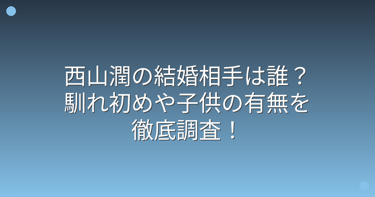 調査の結果、西山潤さんが結婚しているという公式な情報は現時点では確認できませんでした。