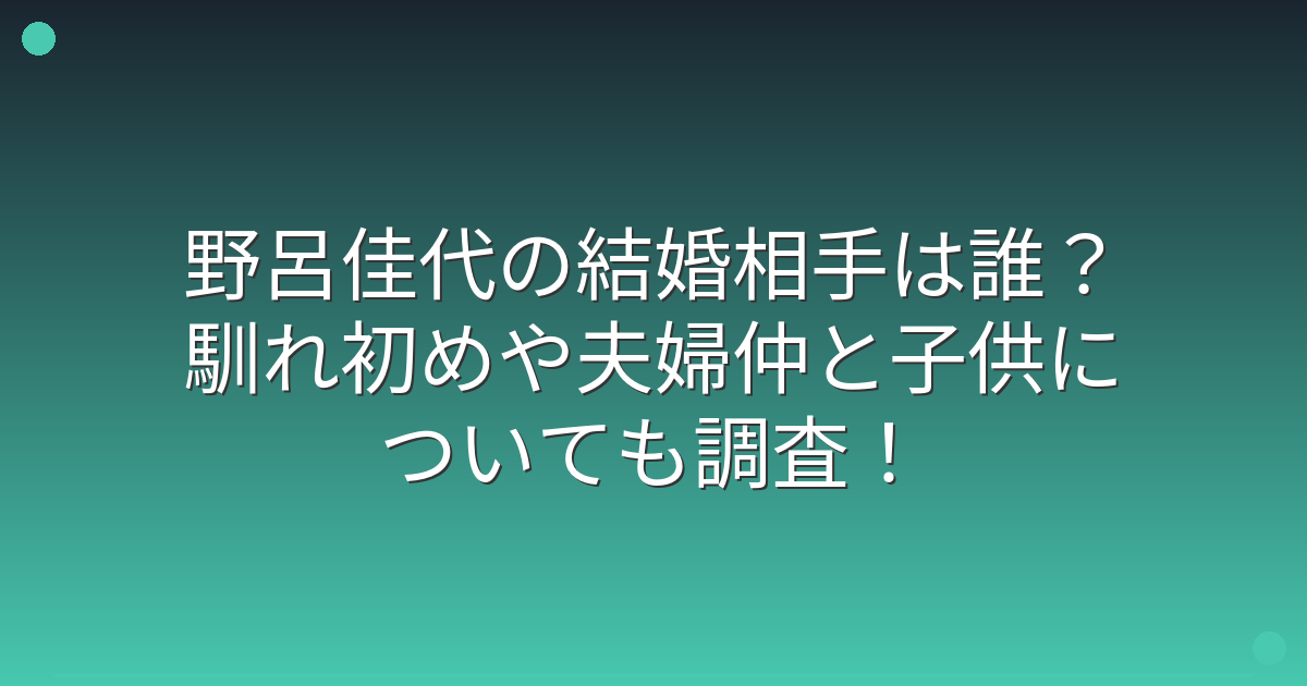 関係者の話では、旦那さんは野呂佳代さんより年上で、落ち着いた優しい性格の方だと言われています。