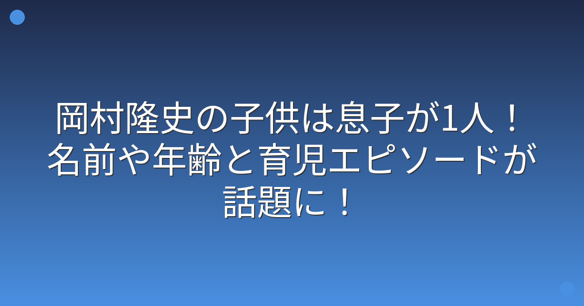 そこで今回は、岡村隆史さんの子供について、息子さんの存在や育児エピソードなど詳しく見ていきましょう!