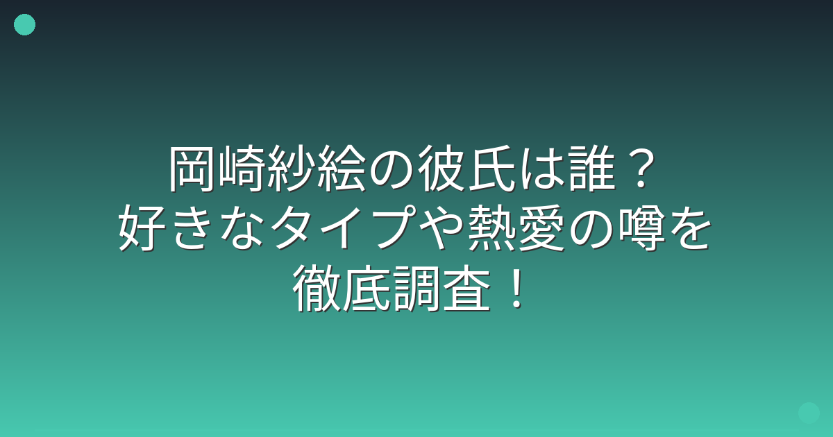 複数の報道を調査したところ、岡崎紗絵さんの熱愛報道や交際相手に関する確定的な情報は見つかりませんでした。