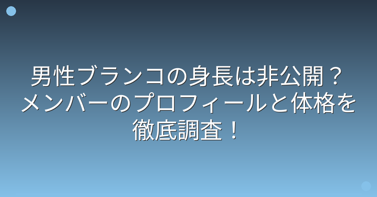 男性ブランコさんのメンバーの身長について調査したところ、現時点では公式に身長が公表されていないことがわかりました。