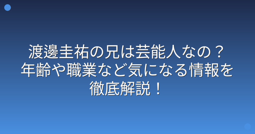 渡邊圭祐の兄は芸能人なの?年齢や職業など気になる情報を徹底解説!