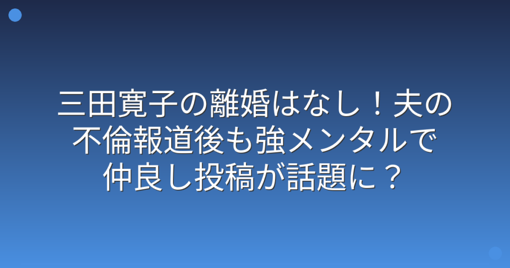 三田寛子の離婚はなし!夫の不倫報道後も強メンタルで仲良し投稿が話題に?
