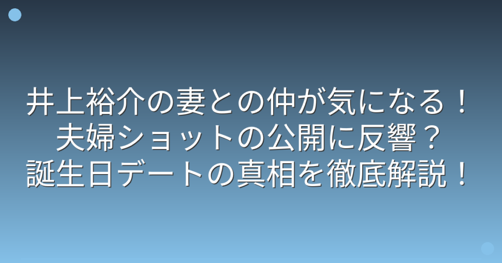 井上裕介の妻との仲が気になる!夫婦ショットの公開に反響?誕生日デートの真相を徹底解説!