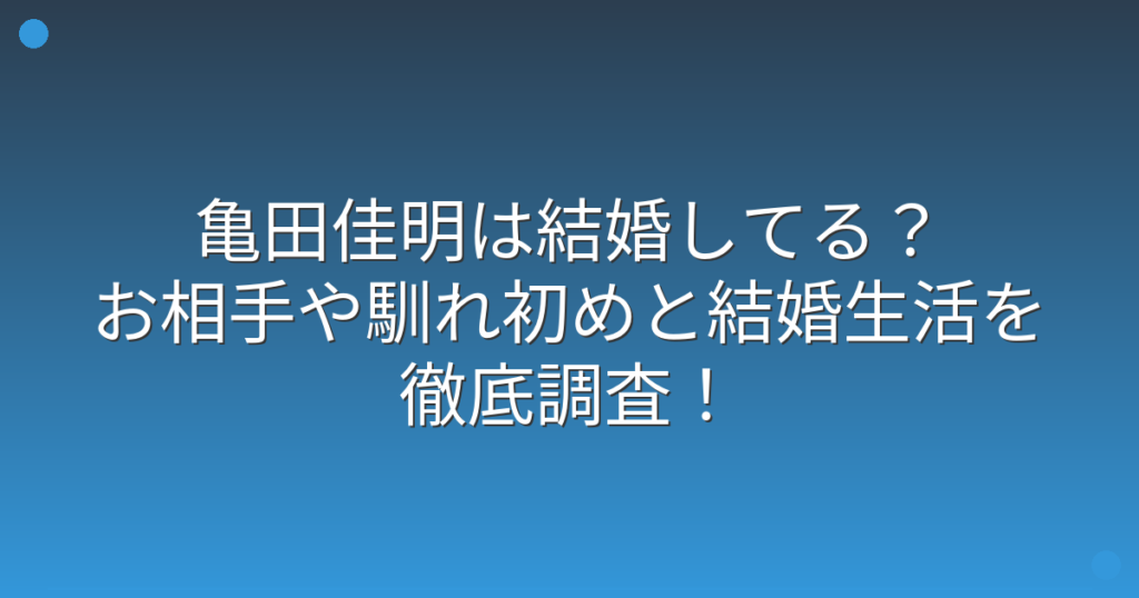 亀田佳明は結婚してる?お相手や馴れ初めと結婚生活を徹底調査!