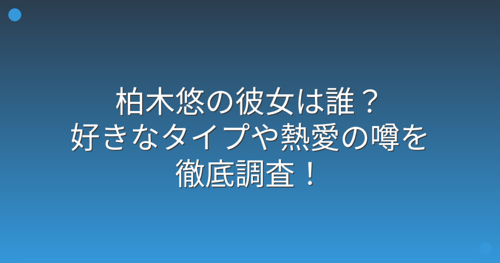柏木悠の彼女は誰?好きなタイプや熱愛の噂を徹底調査!