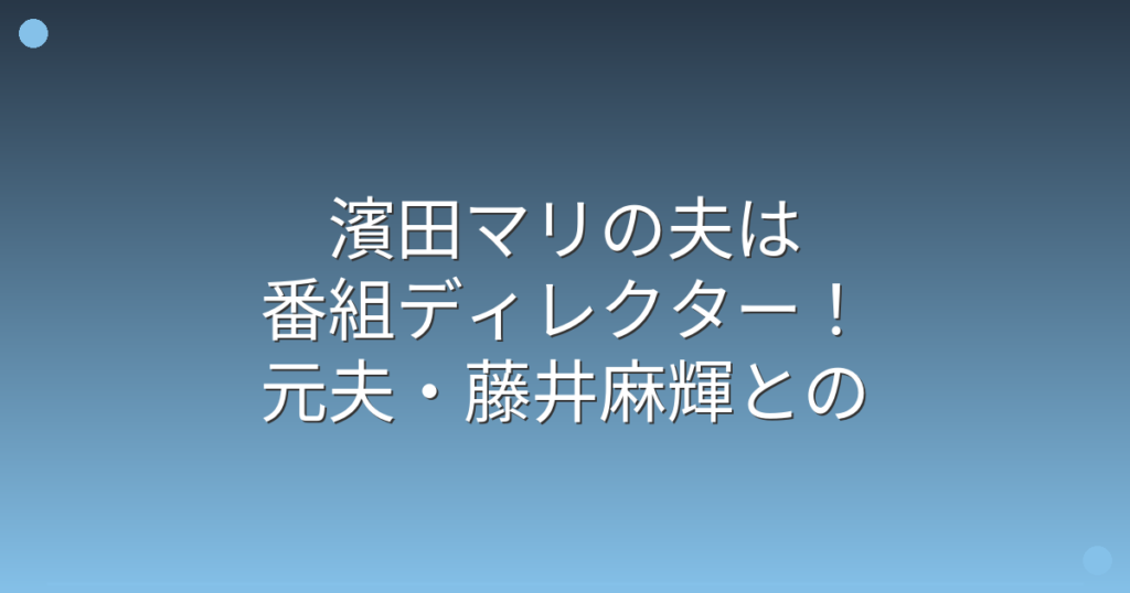 濱田マリの夫は番組ディレクター!元夫・藤井麻輝との離婚理由や娘についても徹底解説!