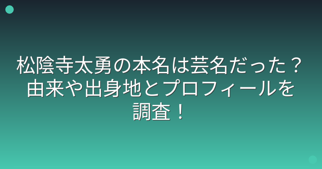 松陰寺太勇の本名は芸名だった?由来や出身地とプロフィールを調査!