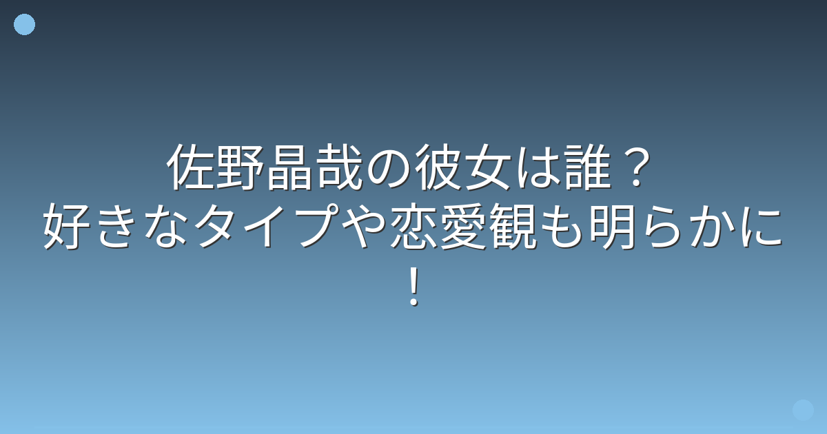 結論から申し上げますと、佐野晶哉さんに現在彼女がいるという情報は確認されていません。