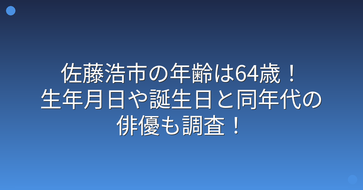 そこで今回は、佐藤浩市さんの年齢や生年月日、同年代の俳優について詳しく見ていきましょう!
