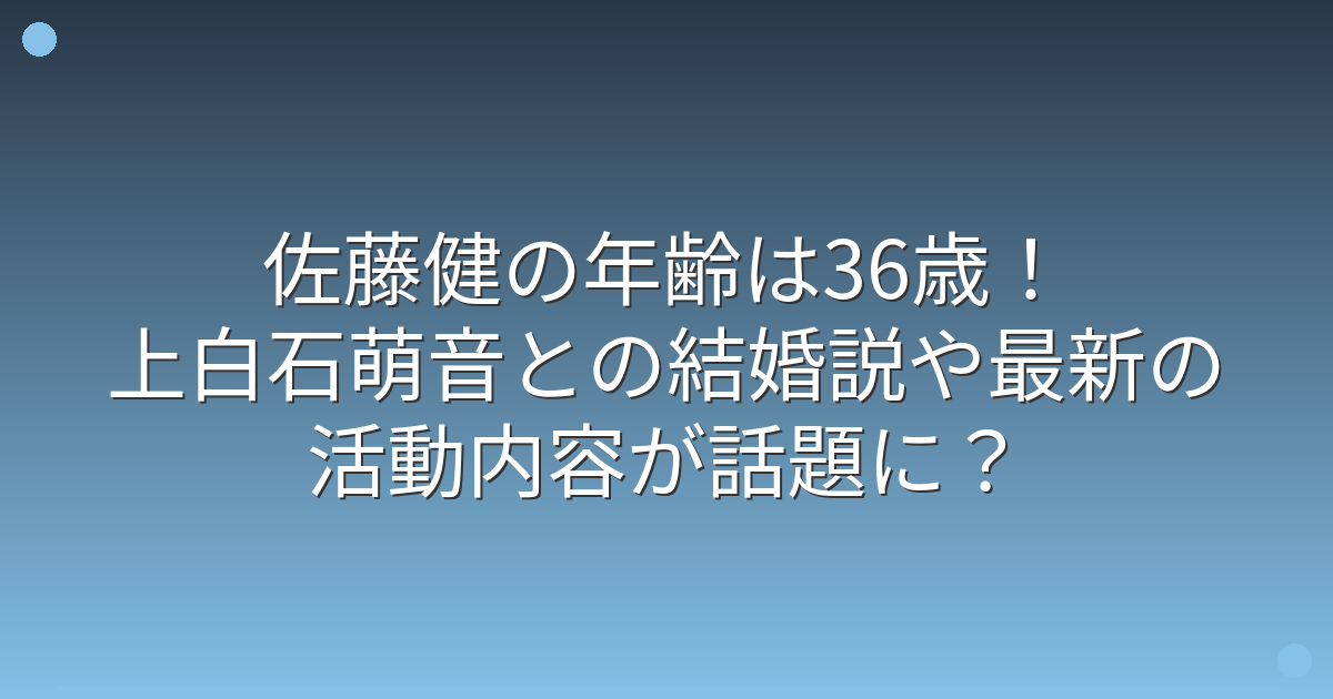 最近、俳優の佐藤健さんの年齢や結婚について、多くの注目が集まっています。