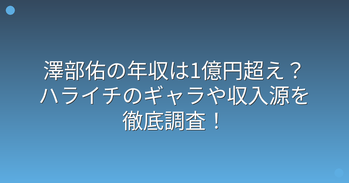 澤部佑さんの年収は、推定で1億円を超えていると言われています。