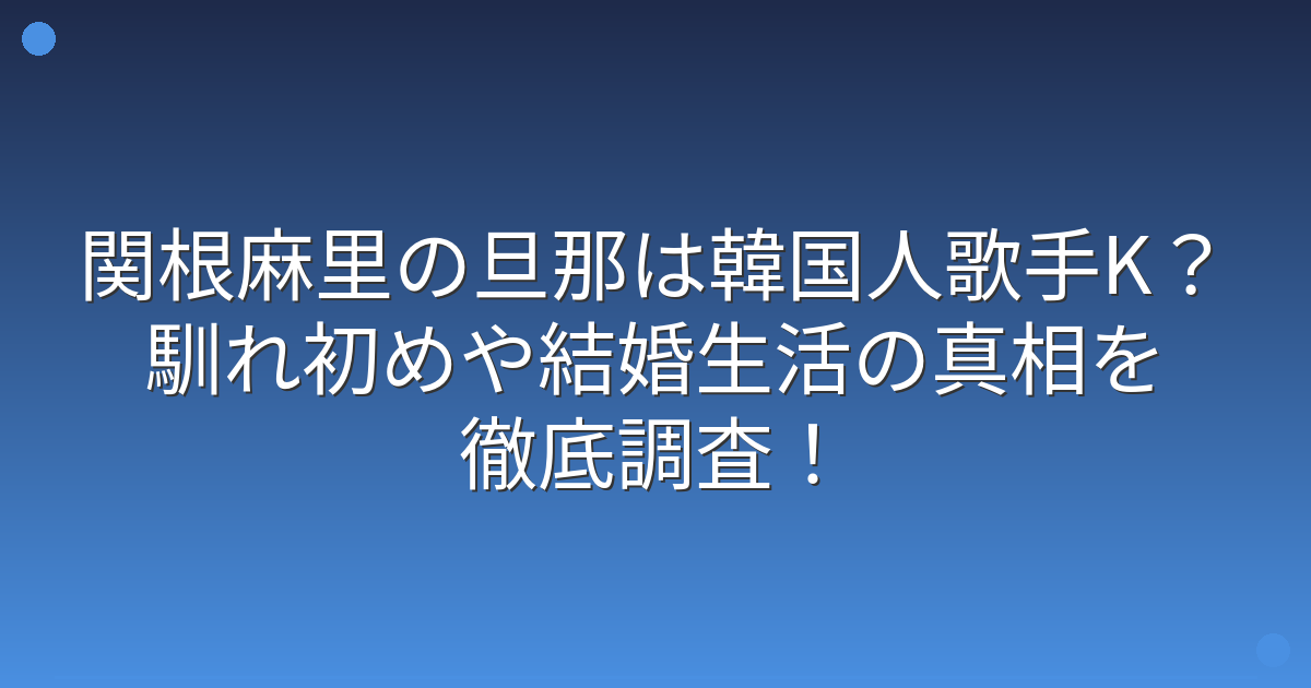 関根麻里さんの旦那さんは韓国の人気歌手Kさんで、2012年の音楽イベントで知り合い、2014年に結婚されました。