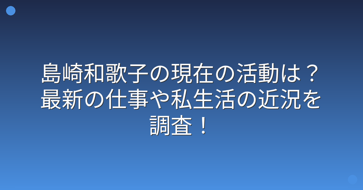 今回は、島崎和歌子さんの現在の活動や最新の仕事、私生活の近況についてお伝えしてきました。