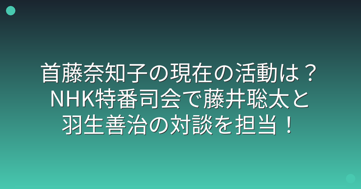 首藤奈知子さんは現在もNHKアナウンサーとして第一線で活躍されており、2025年11月29日23:00からNHK Eテレで放送される「ETV特集 藤井聡太と羽生善治 対談 一手先の世界へ」の司会を務めることが発表されています【3】。