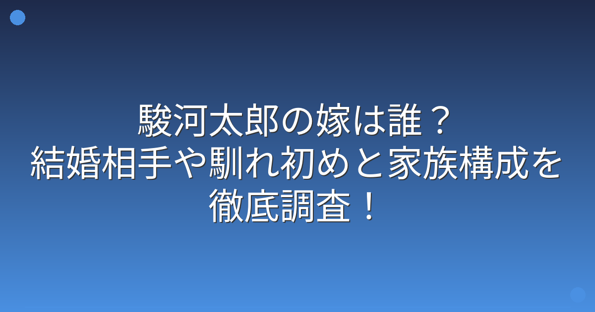 そんな駿河太郎さんのプライベート、特に結婚や奥様について気になる方も多いのではないでしょうか。