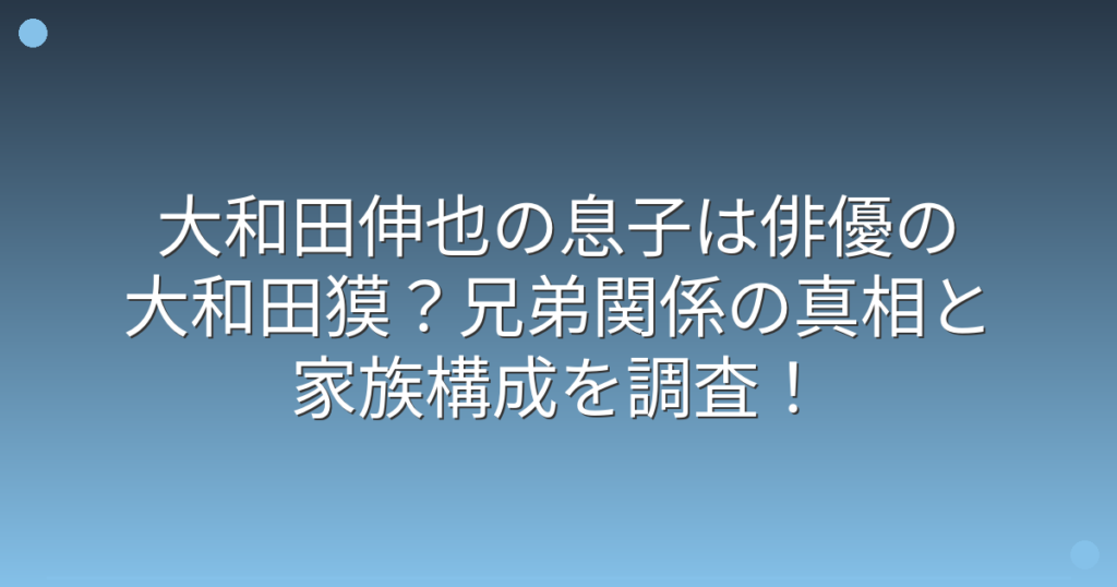 大和田伸也の息子は俳優の大和田獏?兄弟関係の真相と家族構成を調査!
