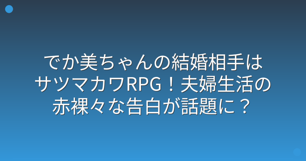 でか美ちゃんの結婚相手はサツマカワRPG!夫婦生活の赤裸々な告白が話題に?