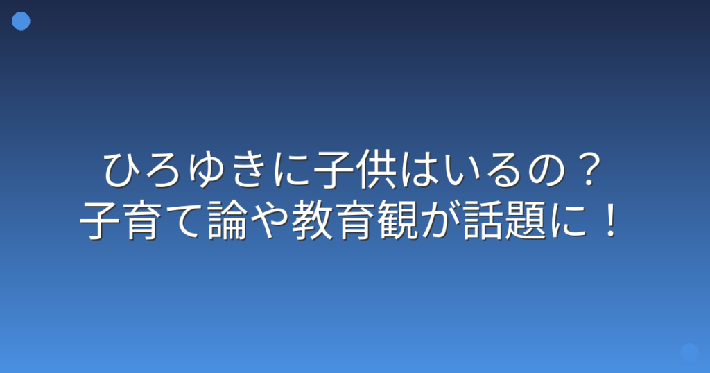 ひろゆきに子供はいるの?子育て論や教育観が話題に!