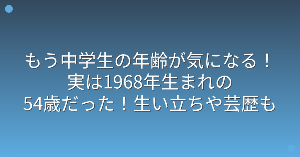 もう中学生の年齢が気になる!実は1968年生まれの54歳だった!生い立ちや芸歴も調査?