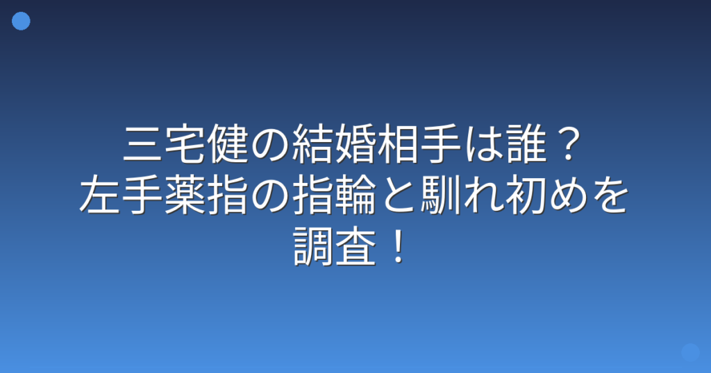 三宅健の結婚相手は誰?左手薬指の指輪と馴れ初めを調査!