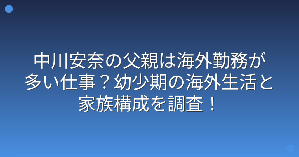 中川安奈の父親は海外勤務が多い仕事?幼少期の海外生活と家族構成を調査!