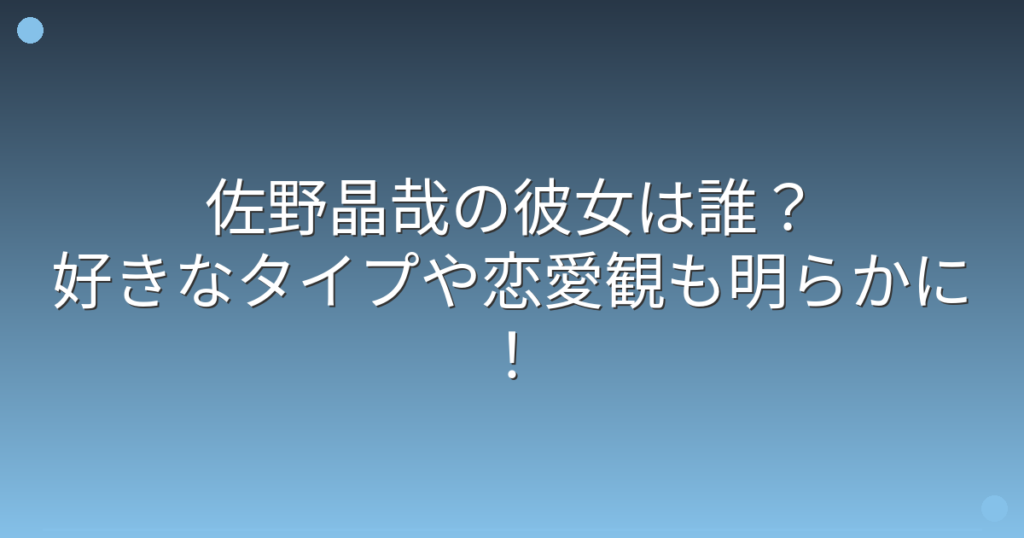 佐野晶哉の彼女は誰?好きなタイプや恋愛観も明らかに!