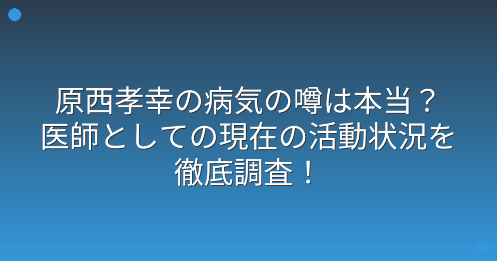 原西孝幸の病気の噂は本当?医師としての現在の活動状況を徹底調査!